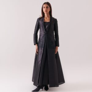 بدلة مطرزة من بالطو و فستان من قماش الشانتون. السعر: ٦٥ دينار كويتي