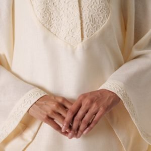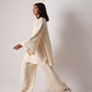بدلة من قميص و بنطلون مطرزة من قماش اللنن المخلوط. السعر: ٦٥ دينار كويتي