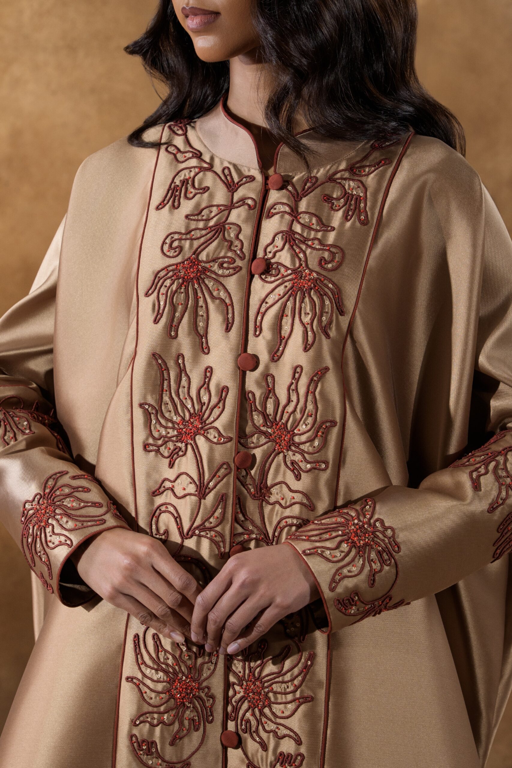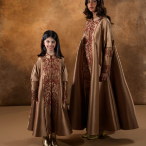كاڤتان من قماش ميكادو بلون كاراميل بتطريز فاخر وتزيين ناعم يُبرز جمال القصّة الانسيابية. يأتي بتفاصيل بايبينغ دقيقة وقصّة مريحة وواسعة تمنحك أناقة راقية وانسيابية ناعمة للكبار والصغار. المقاس: فري سايز اختيارات الطول: من ٥٢ إنش إلى ٥٨إنش
