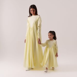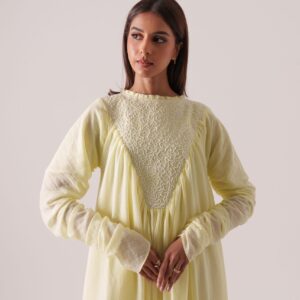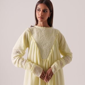 فستان قطن ناعم مع تفاصيل تطريز في منطقة الصدر.