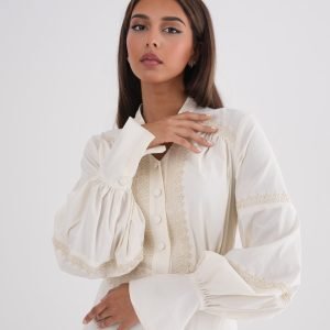 فستان من قماش القطن البوبلين، بتطريز ناعم.