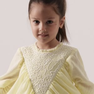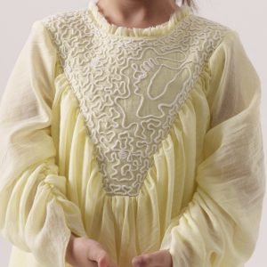فستان قطن ناعم مع تفاصيل تطريز في منطقة الصدر.