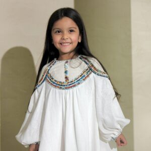 فستان بناتي بنقشة الكاروهات (Plaid) مزين بتطريز أبيض ناعم على الصدر، يبرز جمال النقشة الكلاسيكية بأسلوب أنيق. يأتي بقصّة مريحة وانسيابية مع أكمام طويلة، ليمنح الطفلة راحة وأناقة مثالية للمناسبات الخاصة والإطلالات الراقية.