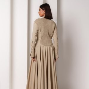 فستان لف من قماش القطن، مطرز بالخيوط و الخرز عند الياقة. الفستان مبطن. المقاسات من اكس سمول الى اكس لارج