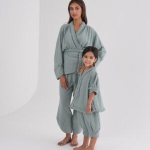Kids set: top and bermuda, with rich braided detailing. Sizes: 2-3 years, 3-4 years, 4-5 years, 5-6 years