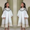 An oversized jumpsuit with hand-made braid and fringe, in 100% cotton. Sizes: from 3 years to 10 years