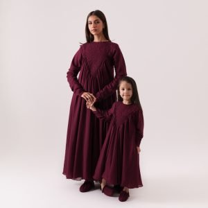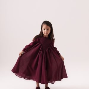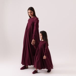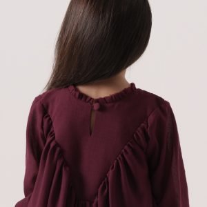 Inverted triangle embroidered bust detail, heavily ruched throughout, with an unfinished, raw-edge neckline, crafted from soft cotton fabric.