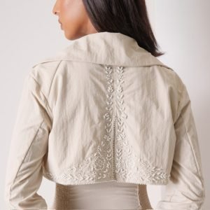 Trench dress with front and back embroidery. Sizes: XS to XL