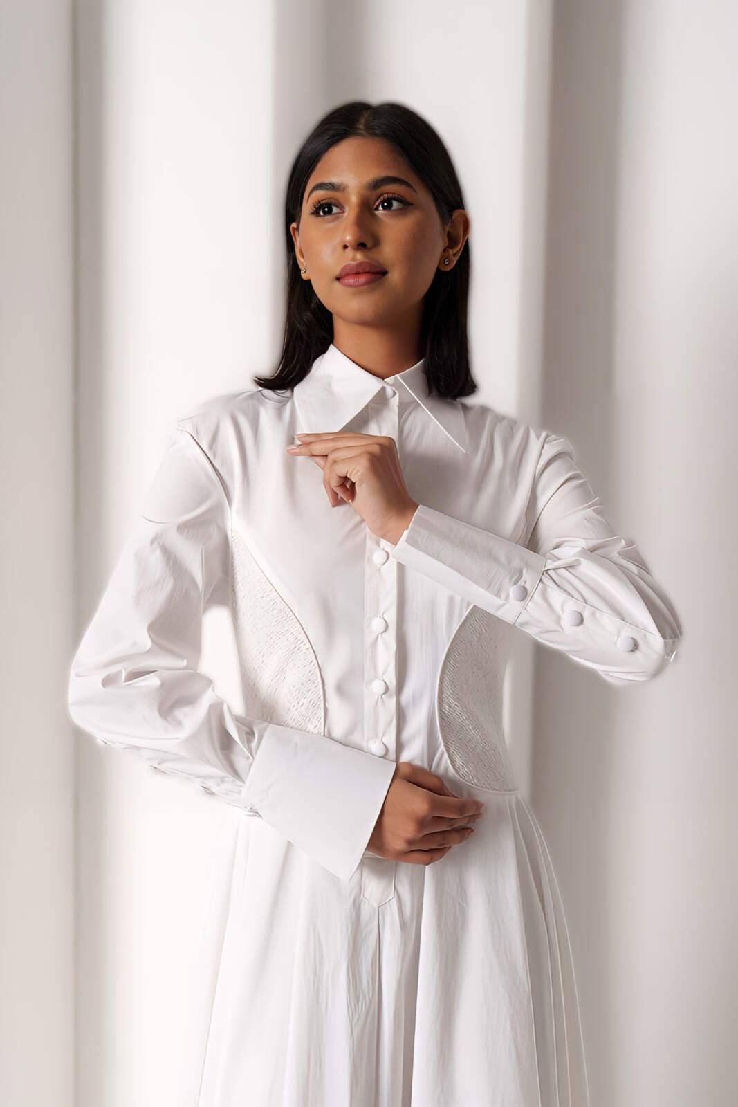 Smocked cotton poplin dress. With lining. Sizes: XS to XL Lengths: 48, 50, 52, 54, 56, 58